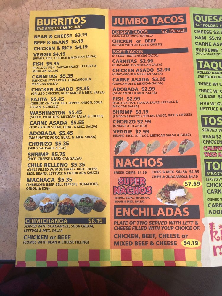 California Burrito, located in Federal Way, WA, offers a mouth-watering menu featuring breakfast & brunch, Mexican dishes, and delicious desserts. Customers rave about the generous portions and quick service, with options for takeout, delivery, and even catering. The Carnitas burrito lunch special is a standout, offering great value at an affordable price. The menu includes a variety of options like carne asada burritos, special burritos with a choice of grilled or pulled chicken, churros, and flavorful salsa options. With friendly employees and a clean environment, California Burrito is a great spot to stop by during a road trip or for a casual meal with friends. Don't miss out on their happy hour specials and refreshing drinks like agua fresca. Overall, California Burrito delivers a satisfying dining experience with delicious food at reasonable prices.